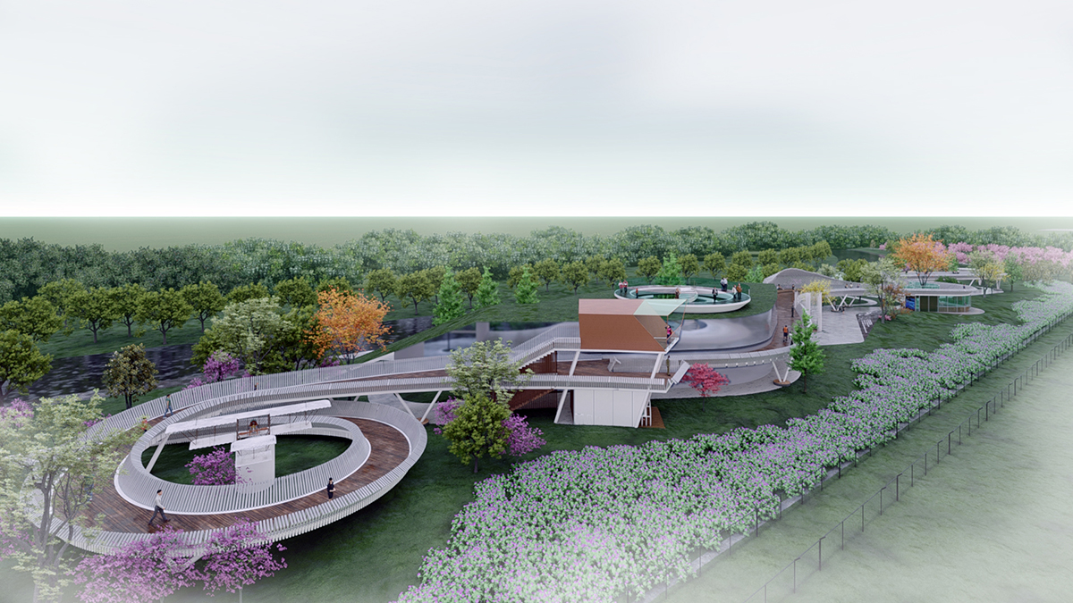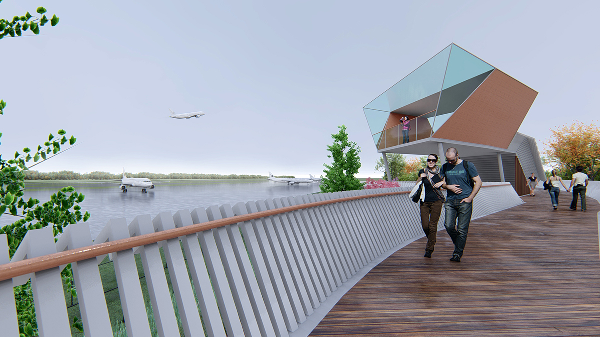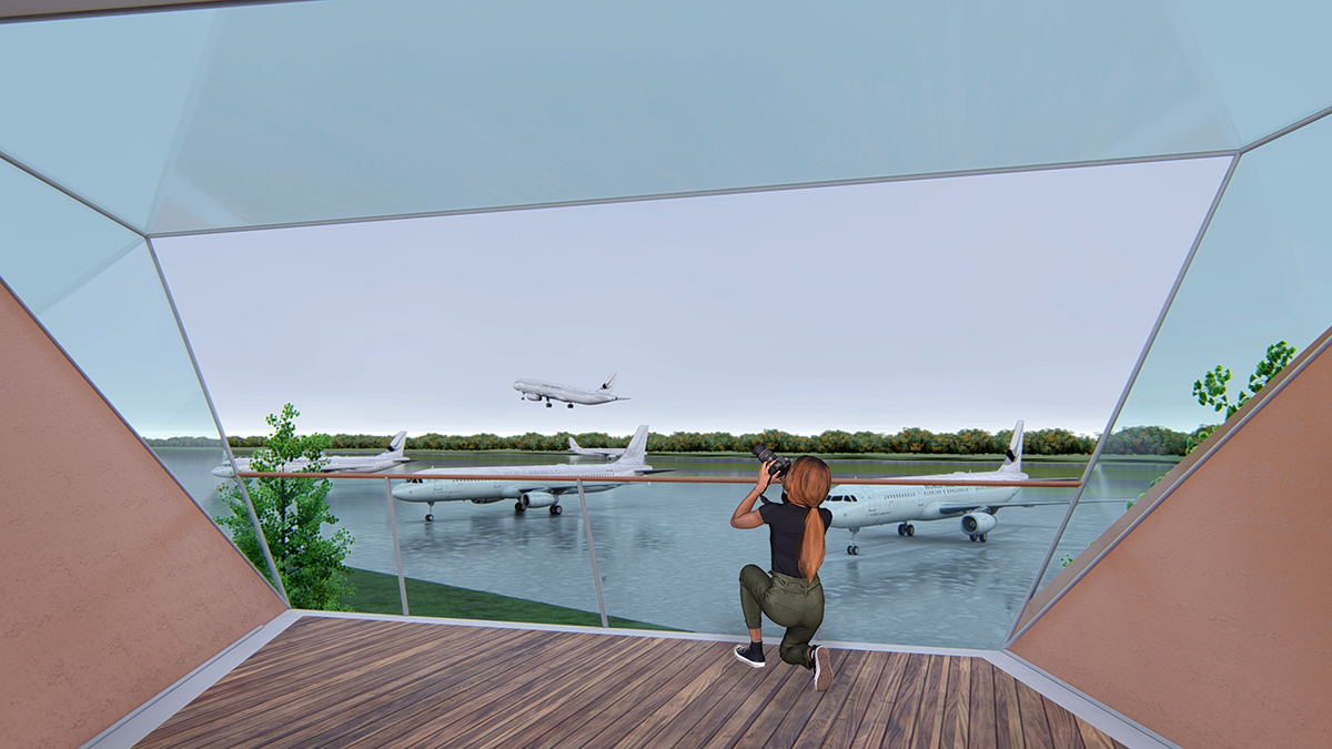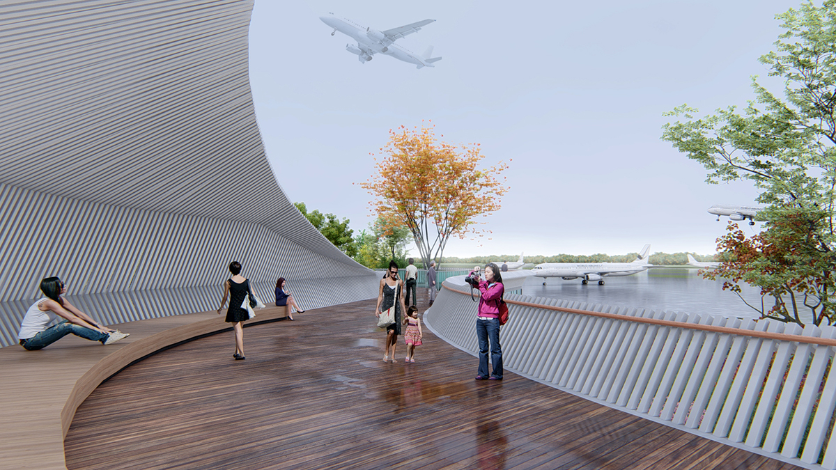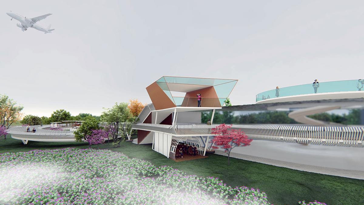 4、設(shè)計(jì)以雙層連廊為主貫穿游園,多層次的觀賞路線、多維度的功能分布,一層主要以航天科普、航天模擬大屏、航天互動(dòng)游戲、休閑木屋、機(jī)場(chǎng)文化記憶等功能,二層主要以機(jī)場(chǎng)起降飛機(jī)攝影、打卡合影、游覽觀光等功能。