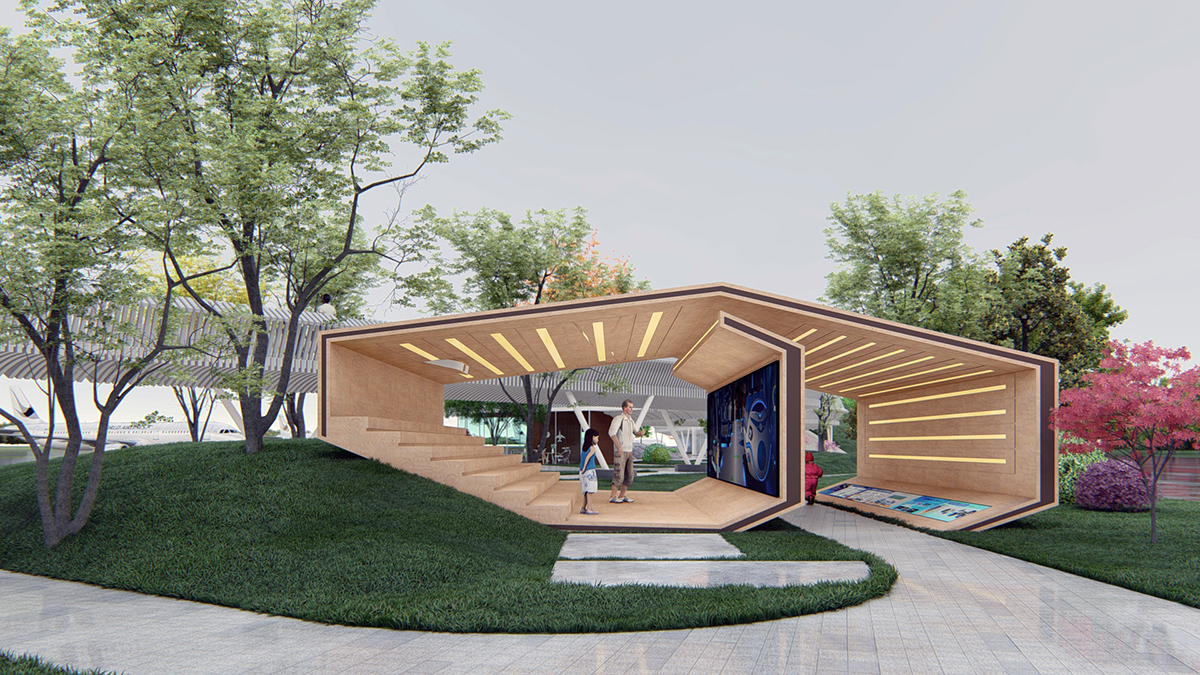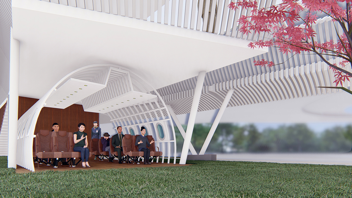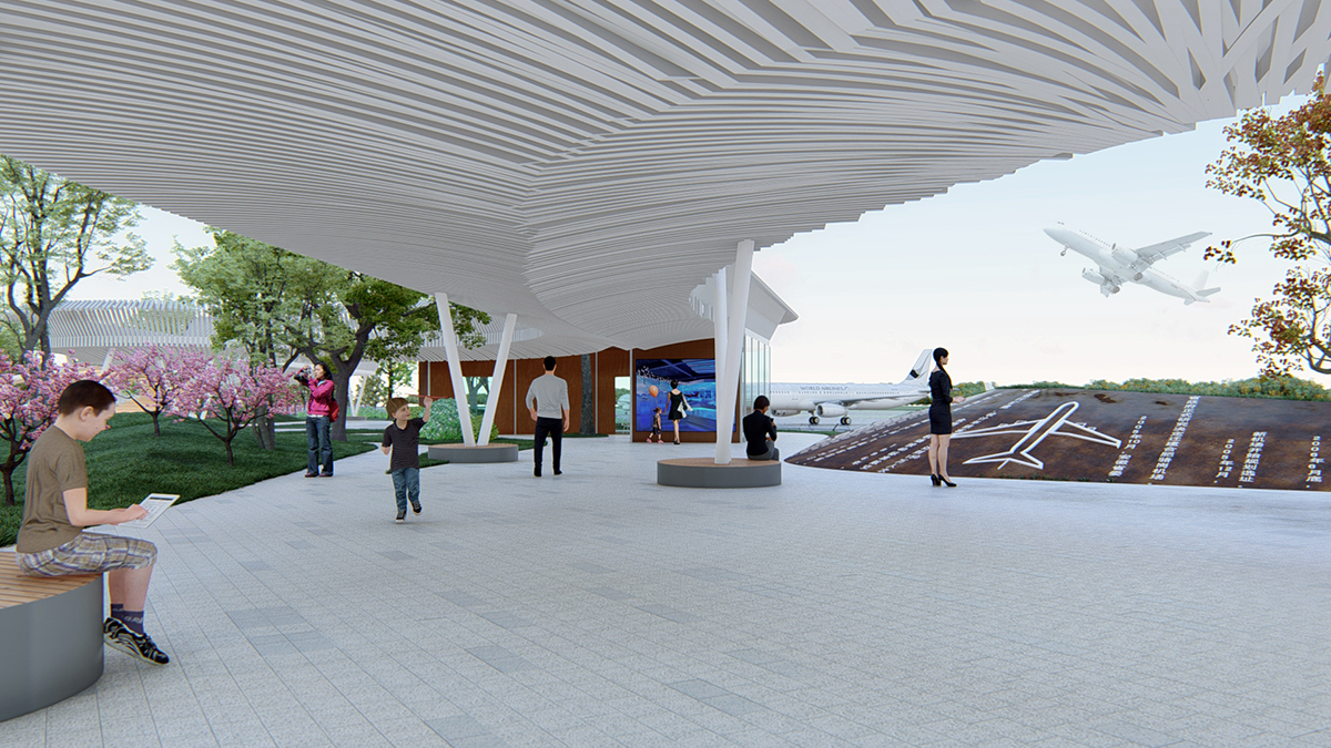 3、設(shè)計(jì)提取機(jī)場(chǎng)航站樓、飛機(jī)造型、尾翼等航空元素融入景觀當(dāng)中,做到功能與形式圍繞航天主題出發(fā)。