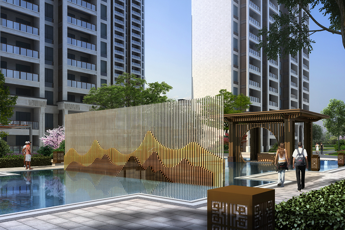 這個項目的景觀以畫卷理念為基礎,讓景觀成為視覺畫卷的空間享受,讓住戶得到置身于詩意畫卷中的精神籍慰。
