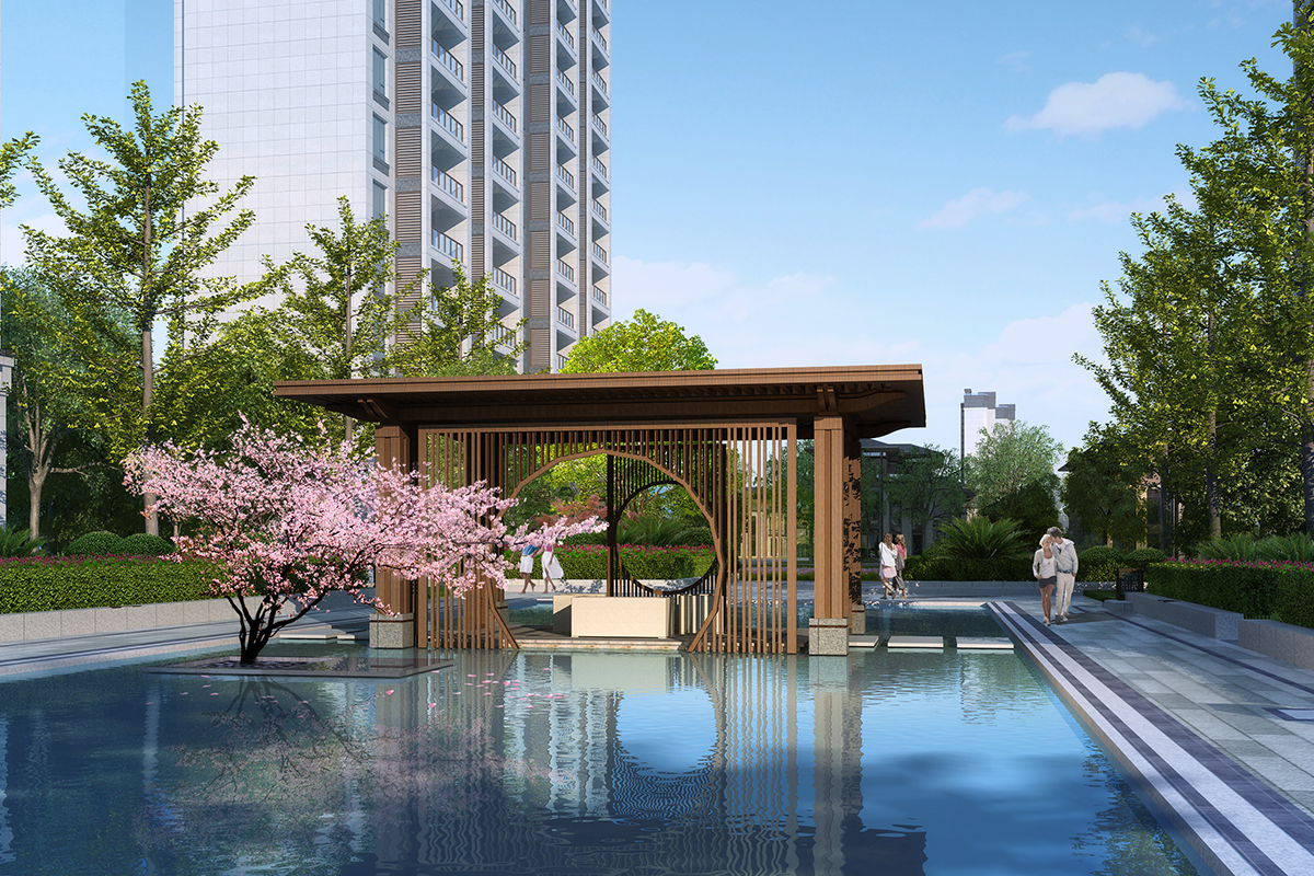 以新中式、新意境來呈現人文園林與皇家園林的融合,水墨素雅與青綠濃墨的藝術交集,為住戶提供一個尊貴、優(yōu)雅、藝術、生態(tài)的居住空間。