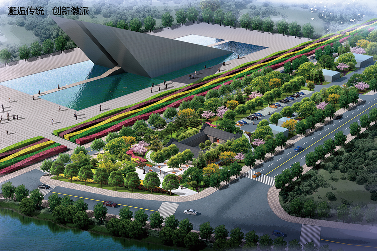 設(shè)計(jì)以古典徽派為景觀風(fēng)格,建筑形式為原渡江戰(zhàn)役紀(jì)念館舊址:四合院樣式,青磚小瓦、山頭墻,為皖南地區(qū)典型馬頭墻砌筑形式。景觀設(shè)計(jì)與建筑風(fēng)格相呼應(yīng),傳承徽派古典韻味。